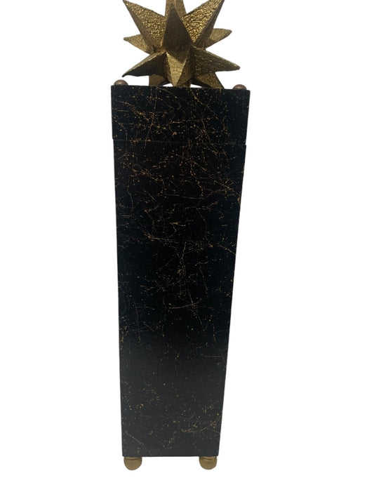 R.Stad Designs Black Gold Hinged Handmade Wood Box Star Topper 18"h x 4" Square