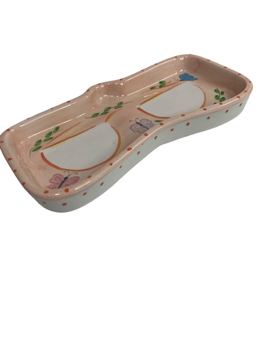 Bella Casa by Ganz Ceramic Eyeglass Holder Dish Pink Butterfly Floral