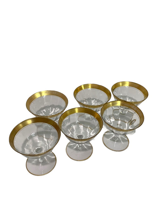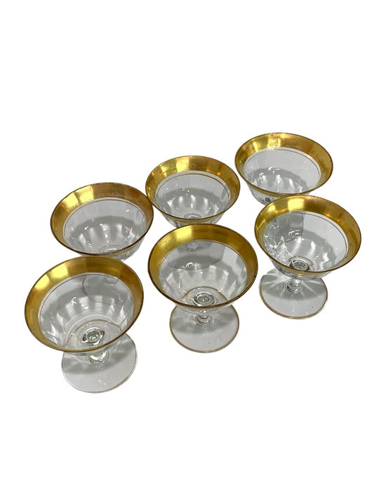 Vintage Gold Rim Floral Crystal Set of 6 Low Sherbet Glasses 3.75" h Stemmed