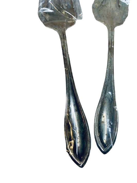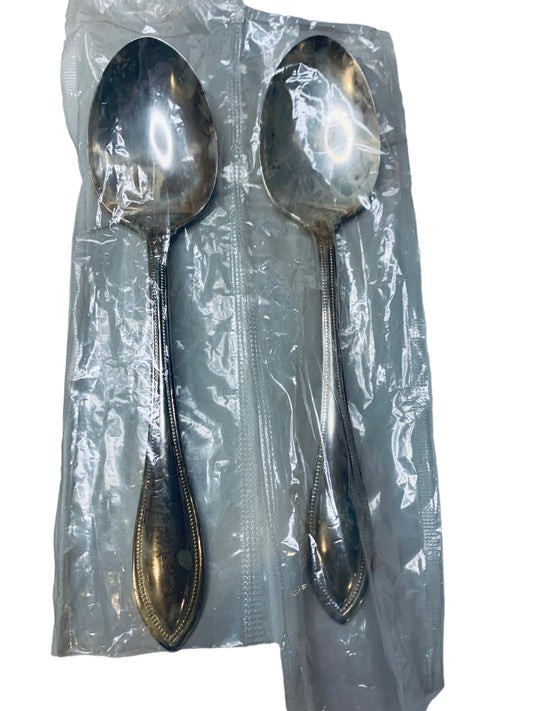 Oneida Ltd "Silver Arbor" Flatware Beaded Edge Set of 2 Serving Spoon 8.75"