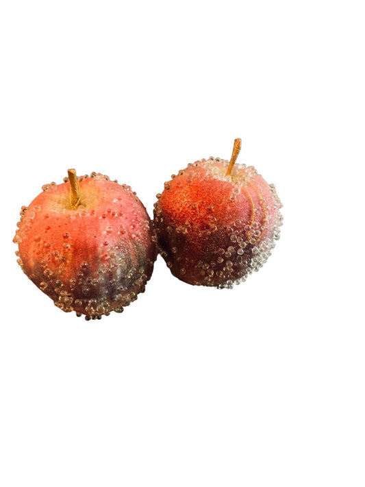 Vintage Beaded Sparkly Apple Kitschy Decor Hanging or Tabletop Set of 2 Ornaments 3.5"