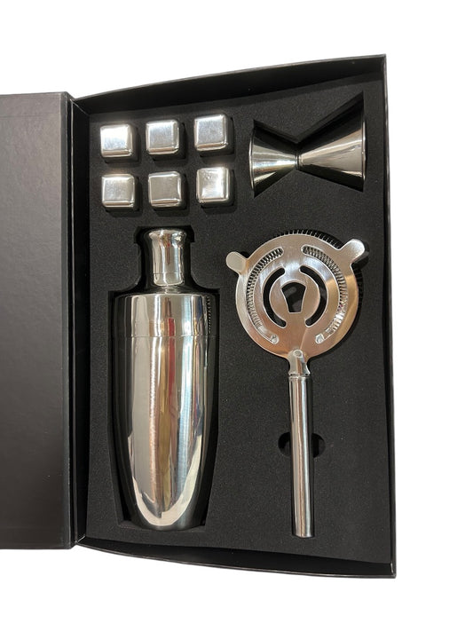 Brookstone Mixologist Gift Set Shaker Strainer Jigger Chillers Stainless Steel New