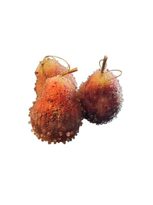 Vintage Beaded Sparkly Pear Kitschy Decor Hanging or Tabletop Set of 3 Ornaments 3.5"