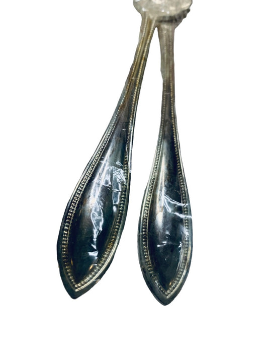Oneida Ltd "Silver Arbor" Flatware Beaded Edge Set of 2 Serving Forks 8.25"