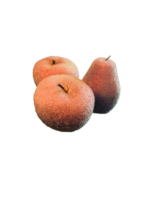 Vintage Beaded Sparkly Apple Pear Kitschy Tabletop Decor Set of 3 3.5"