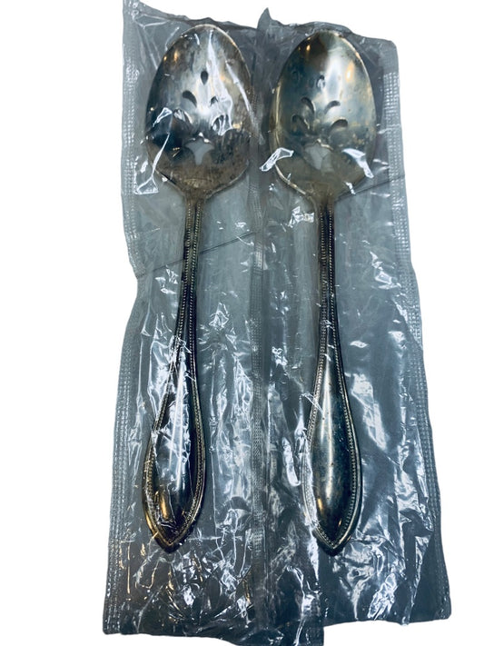 Oneida Ltd "Silver Arbor" Flatware Beaded Edge Set of 2 Vegetable Serving Spoons 8.25"