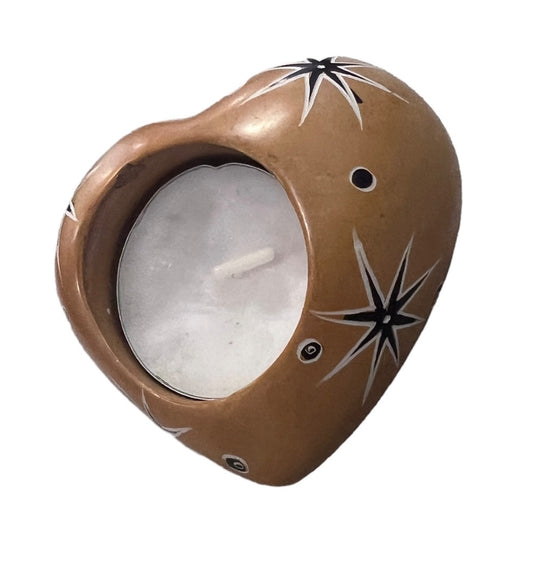 Hand Carved Soapstone Heat Tealight Candle Holder Dish Celestial Peace Love Valentine