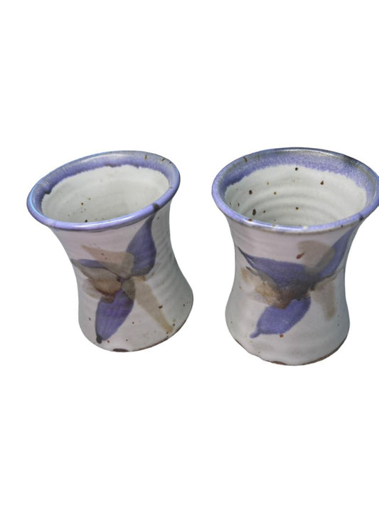 Hand Thrown NC Pottery Small Vases Lavender Tan Gray Set of 2