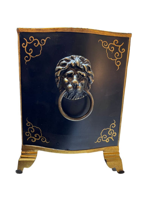 Hand Painted Metal Tole Lion Head Handle Planter Footed By Lotus Arts
