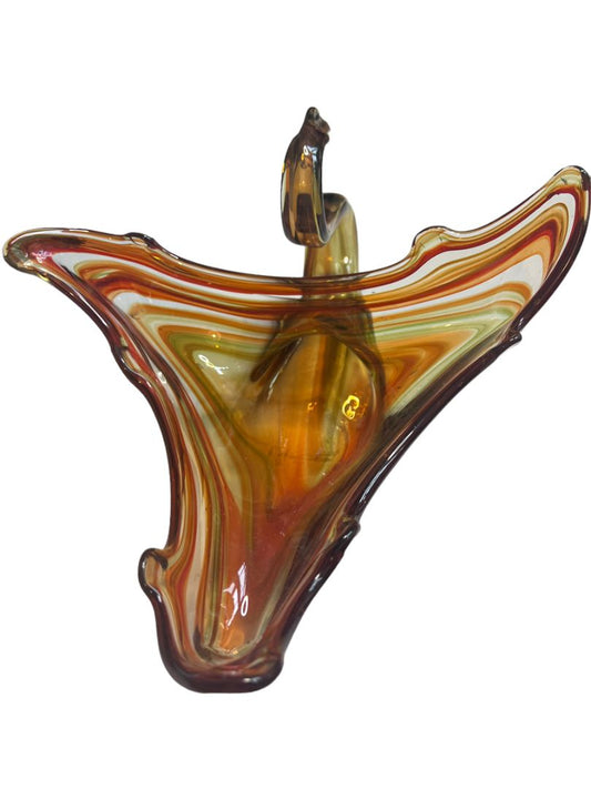 Vintage Hand Blown Glass Swan Planter Bowl Orange Brown Clear Swirl