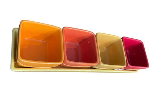 Crate & Barrel 5 Piece Condiment Tray Serving Set Yellow Red Orange