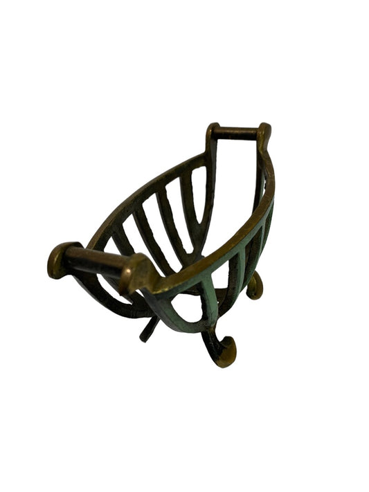 Small Metal Basket Made in Israel 4.5"l x 2.5"h Green Paint Brass