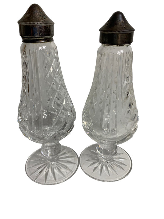 Vintage 1970s Crystal Footed Salt and Pepper Shakers Set 6.25 Inches