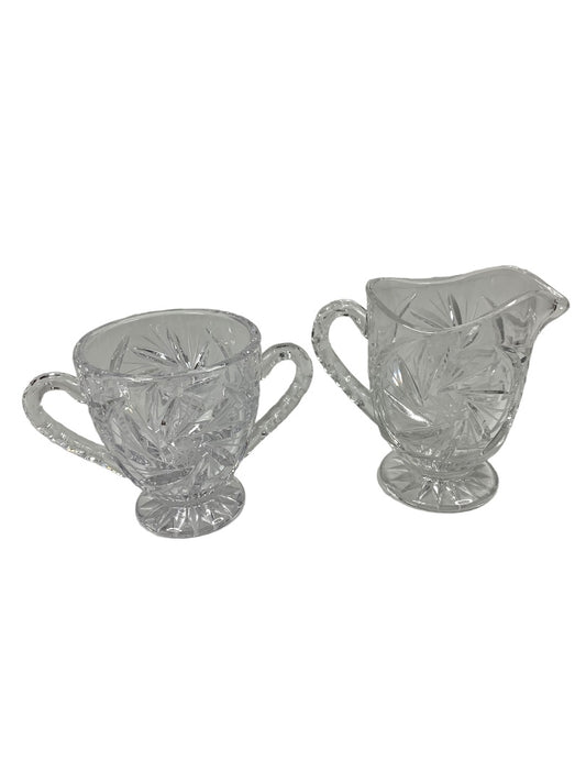 Vintage Clear Cut Pinwheel Crystal Footed Creamer and Sugar Bowl Set