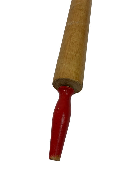 Wooden 18" Rolling Pin Red Handles Farmhouse Décor Shabby Chic Cabin 10" Roller