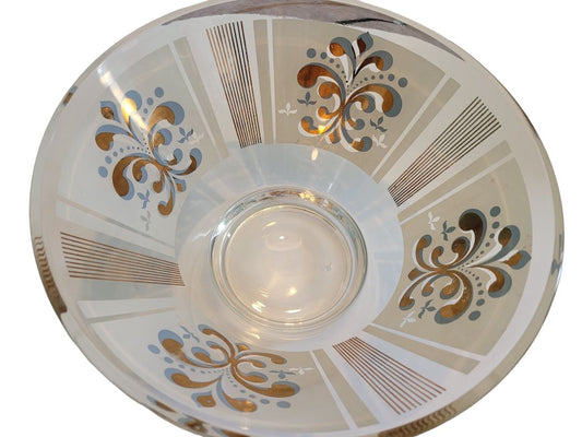 Anchor Hocking Glass Chip Bowl Fleur-de-lis 22kt Gold MCM Vintage