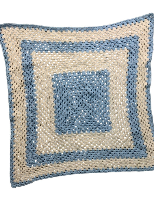 Vintage Crochet Afghan Blanket Throw 38" Square Blue White