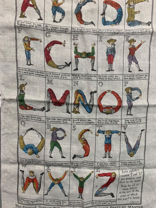 Vintage Tea Towel The Comical Hotch Potch or The Alphabet Posture 26" x 16"