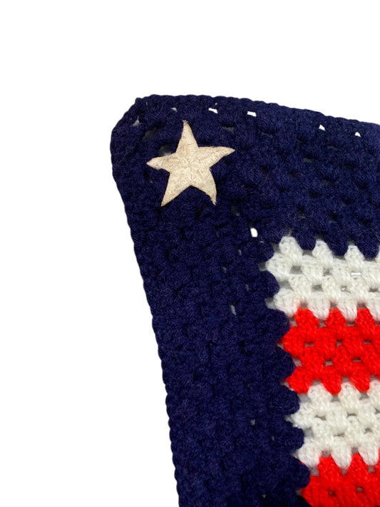 Vintage Crochet Patriotic USA Throw Blanket Afghan Stars Stripes 55" x 41"