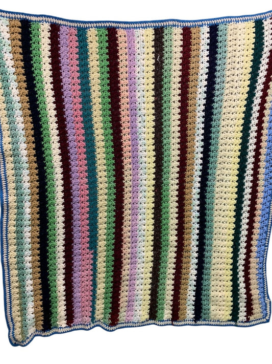 Vintage Crochet Striped Afghan Throw Blanket 48" x 42"