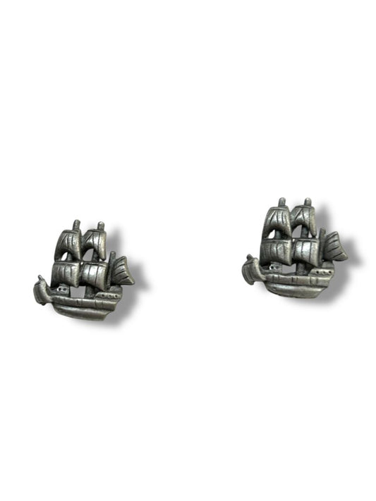 2 Pair Post Pierced Earrings Silvertone Ship Eagle Globe .5"
