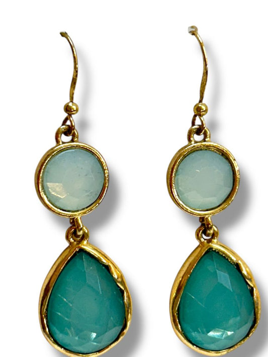 2 Pair Pierced Earrings Goldtone Aqua Fishhook Drop Dangle