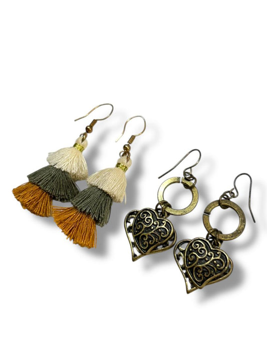 2 Pair Fishhook Pierced Earrings Fringe Tassel Hearts