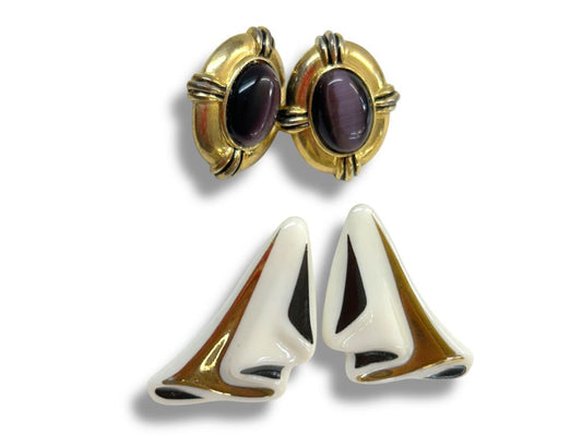 1980s 2 Pair Pierced Earrings Goldtone Purple Abstract