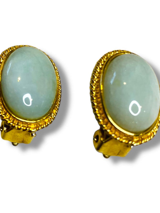 Vintage Goldtone Aqua Non-Pierced Earrings Oval .75"