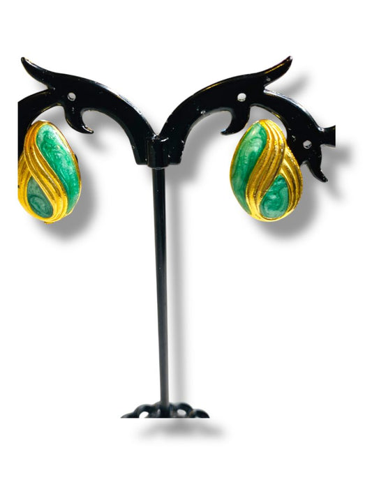 Vintage Clip On Non-Pierced Earrings Goldtone Green .75"