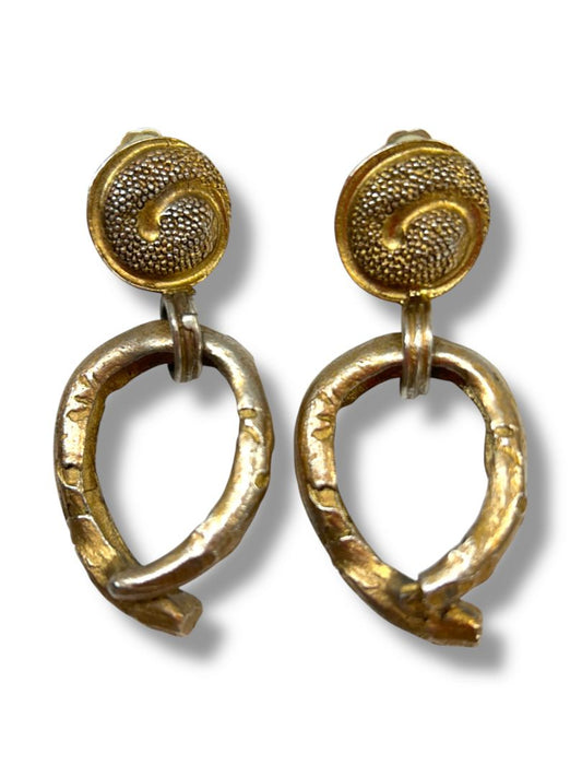 2 Pair Clip On Earrings Non-Pierced Vintage Goldtone Drop Dangle