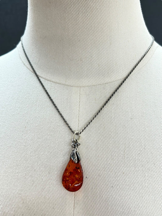 Signed KG Made in Italy Chain Necklace Amber Color Pendant 17 Inch