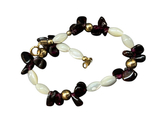 Beaded White Purple Chip Stones Goldtone Bracelet 7.5 Inch