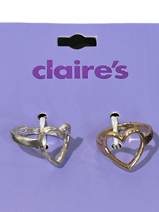 Claires New Set of 2 Adjustable Heart Rings Silvertone Goldtone