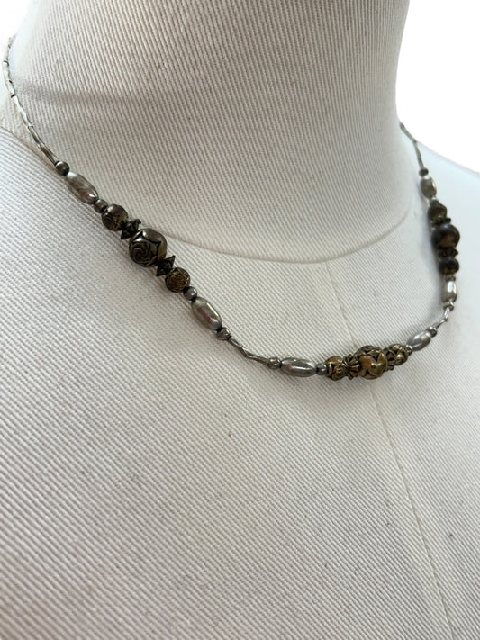 Vintage Mixed Metals 18 Inch Necklace Barrel Clasp Rose Beads