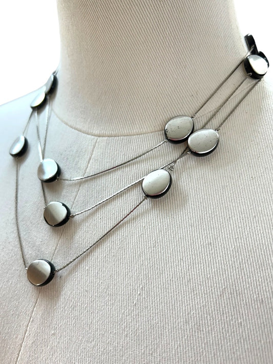 Lightweight Tiered Necklace Silvertone Black 17-20 Inch Lobster Clasp