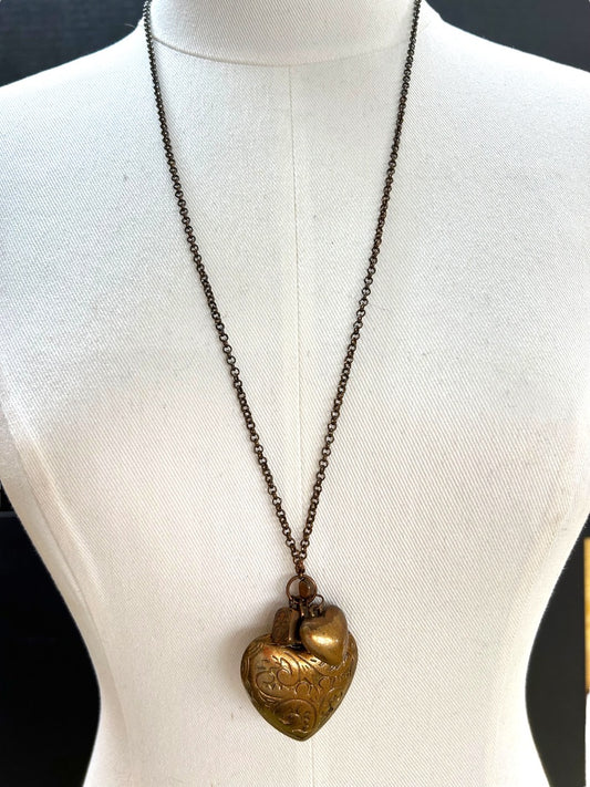 Copper Color Charm Necklace Overhead 29 Inch Chain Puffy Heart