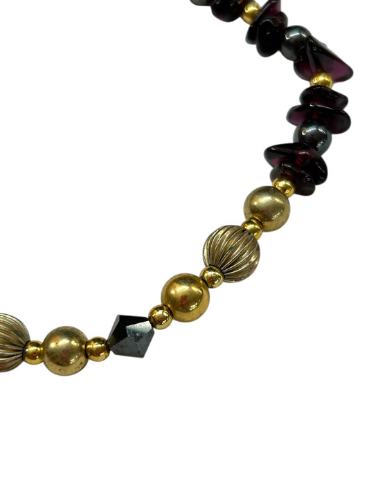 Beaded 7 Inch Spring Clasp Bracelet Turquoise Amethyst Goldtone