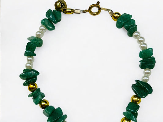 Green Chip Bead Stone Beaded 7.75 Inch Bracelet Goldtone Spring Clasp