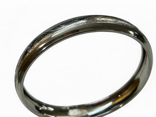 Silvertone Etched Bangle Bracelet 2.6 Inch Inside Diameter 12 mm Width