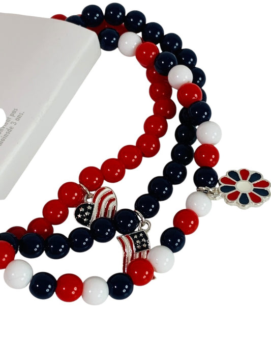 Claires New Set of 3 Stretch Bracelets USA Patriotic Red White Blue