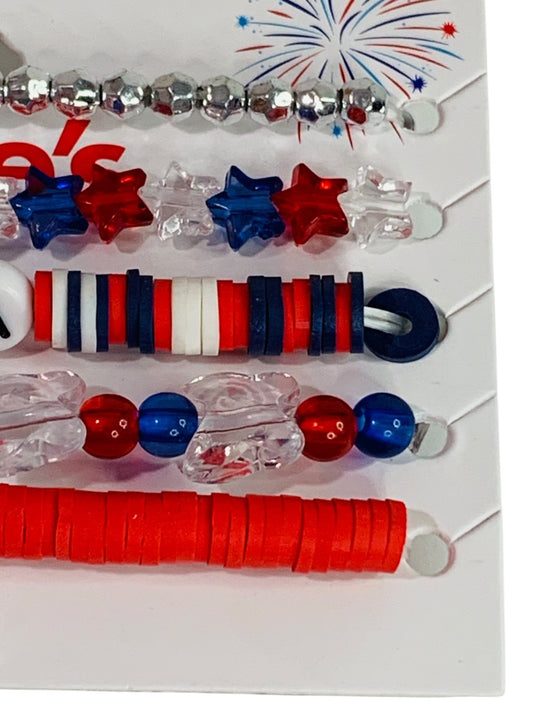 Claires New Set of 5 Beaded Stretch Bracelets Patriotic USA