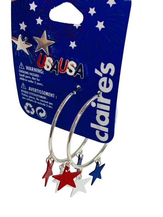 Claires New Set of 2 Post Pierced USA Earrings Patriotic Stars