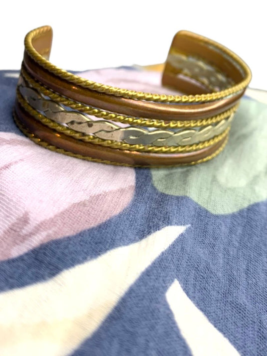Mixed Metals Open Bangle Cuff Bracelet Textured