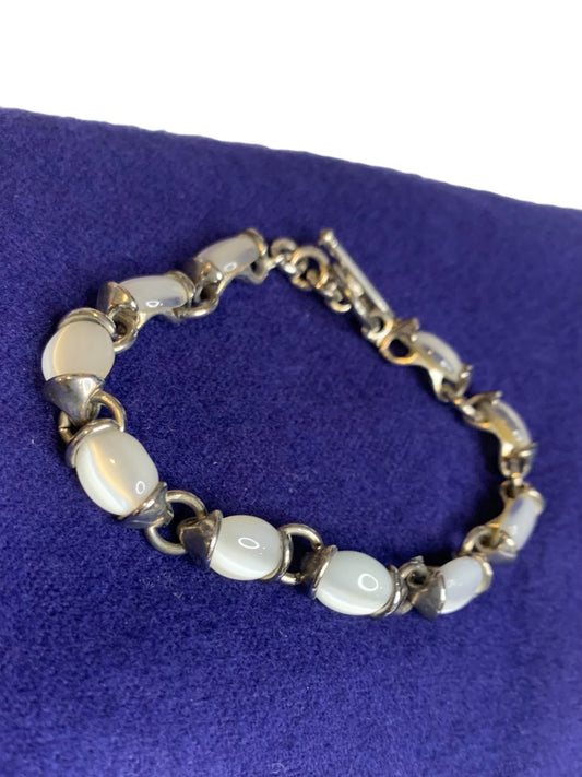 Silvertone and White Stone Bracelet Toggle Clasp 7.5 Inch