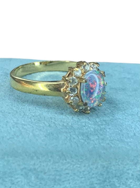 Size 9.5 Goldtone Costume Jewelry Ring Solitaire Glittery Rhinestone Trim