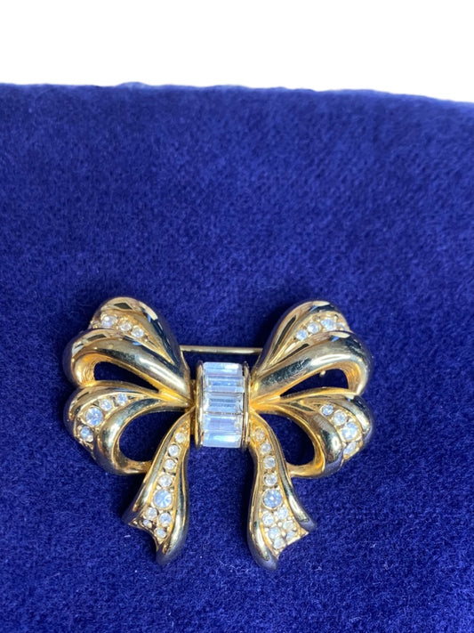 Goldtone Embellished Bow Brooch Pin 1.6 Inch