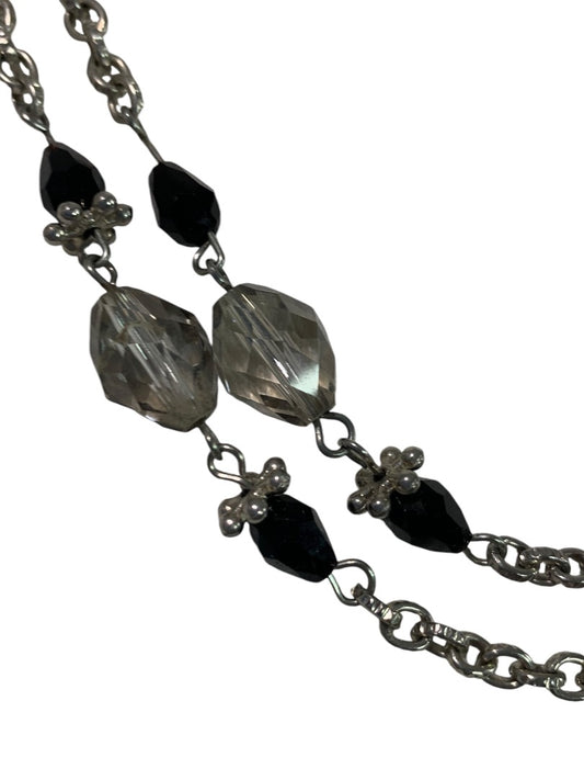 Long Strand String Necklace 42 Inches Silvertone Black Lobster Clasp