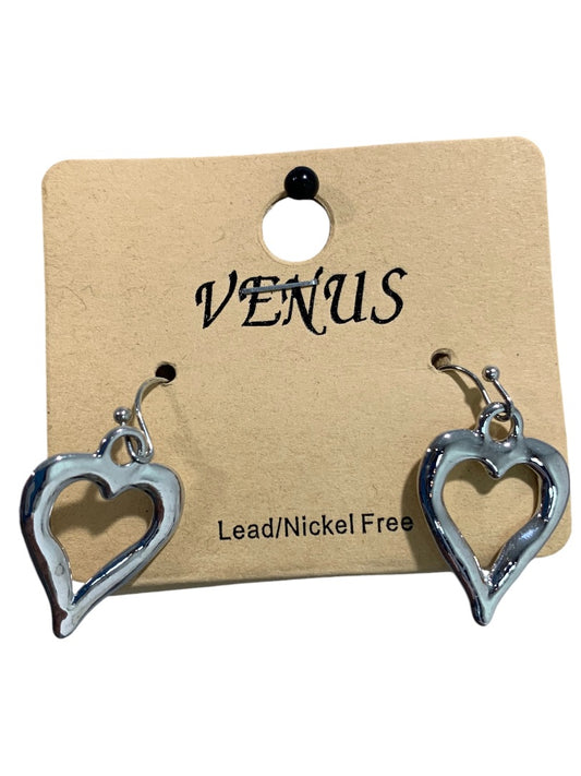 Venus Silvertone Heart Pierced Dangle 1.25 Inch Drop Earrings Hook
