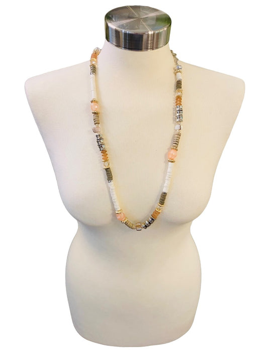 Chico's Mixed Metals Pink Brown Silvertone Lobster Clasp 37-40"